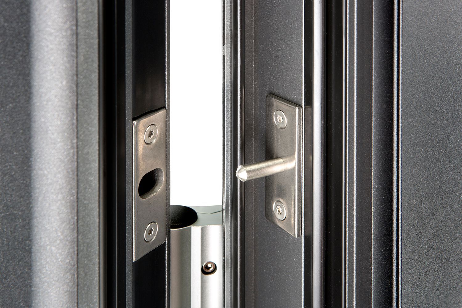 - Bolzensicherung verhindert das Aushebeln des Türflügels